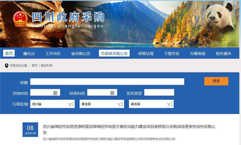 【綿陽(yáng)正信·招標(biāo)部消息】受綿陽(yáng)市自然資源和規(guī)劃局委托由我公司招標(biāo)代理部代理的“綿陽(yáng)市地質(zhì)災(zāi)害防治能力建設(shè)項(xiàng)目裝修部分采購(gòu)項(xiàng)目”通過(guò)市財(cái)政部門的審批,與與采購(gòu)單位溝通共同編制的招標(biāo)文件,已經(jīng)掛網(wǎng)公示招標(biāo),供應(yīng)商也陸續(xù)按照法律法規(guī)到我公司進(jìn)行報(bào)名投標(biāo),該項(xiàng)目將于2019年5月13日在我公司進(jìn)行開標(biāo)。我單位也在積極準(zhǔn)備該項(xiàng)目開標(biāo)的相關(guān)事宜。